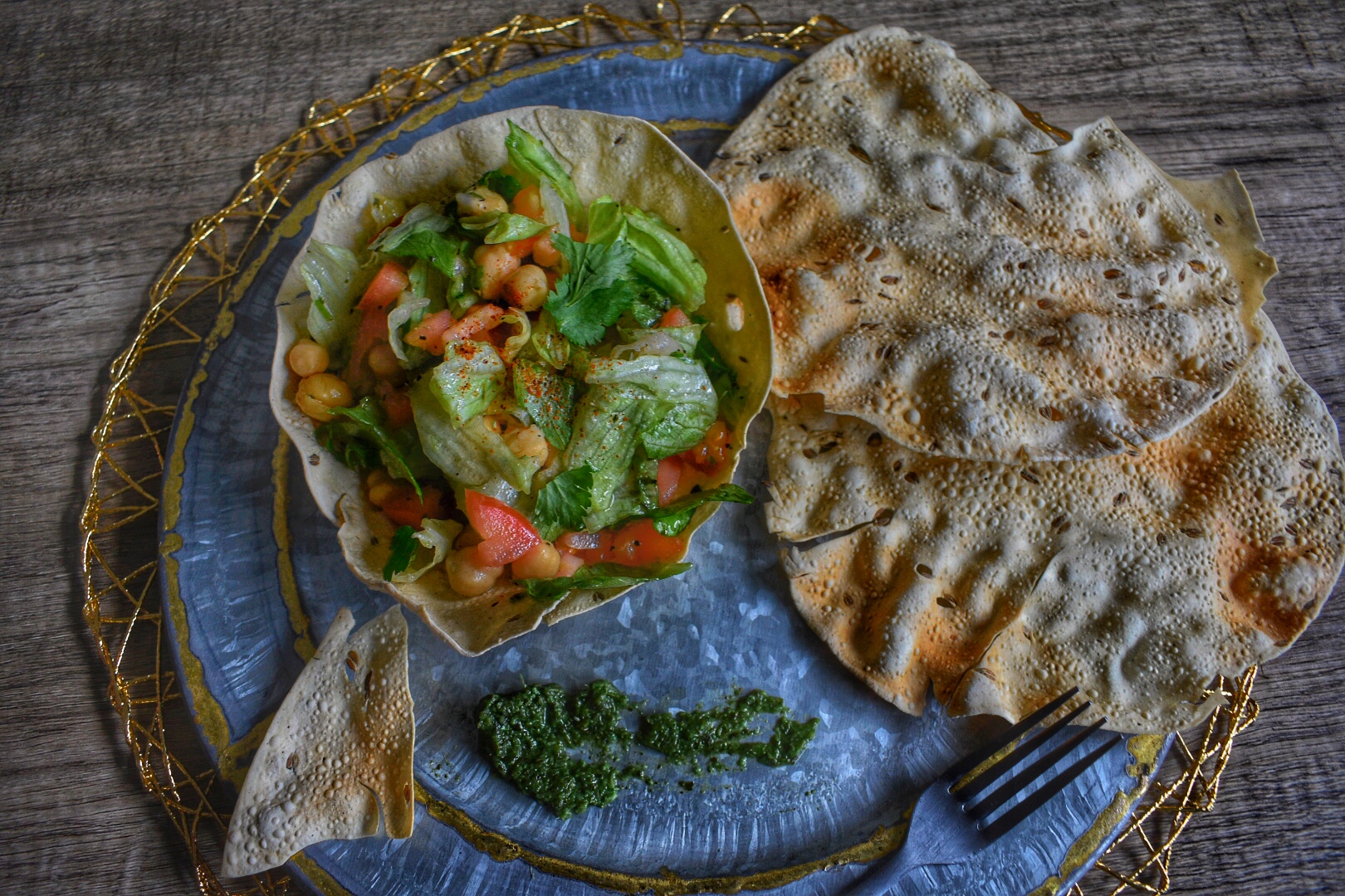 Papad Salad with Green Chutney Vinaigrette