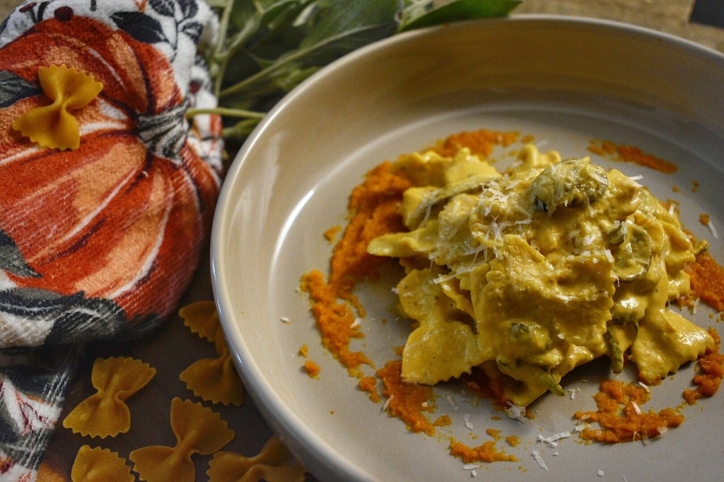 For some context, Banza Pasta sent me some of their new bowtie pasta to try out. Alongside of that was a new pumpkin pasta recipe they had recommended. That’s what inspired me to make my own version of a pumpkin pasta. And boy am I glad I did. My version of this recipe, is earthy yet delicate. Filled with all that good fall flavor. This was a crowd pleaser and I’m excited to share why!
